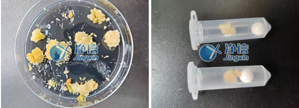 上圖為1分鐘的研磨效果,已經(jīng)完全研磨完成。效果非常好,老師要求愈傷研磨一定要凍液氮,否則rna可能降解,所以人工研磨特別不方便,經(jīng)過(guò)多次了解和對(duì)比所以老師們選用凈信全自動(dòng)樣品快速研磨儀代替人工處理。效率高,效果好。解決了老師的研磨問(wèn)題。