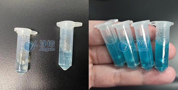 上圖為完成后的研磨效果,細(xì)度超出老師的預(yù)期。之前是用手持式組織研磨儀做樣,交叉污染不好避免,通量也低,處理費時費力實驗周期非常長,所以選用凈信多樣品組織研磨儀代替人工處理。效率高,效果好。非常符合老師的需求。