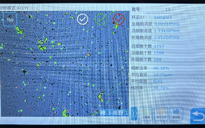 總細(xì)胞濃度3.02×10?/mL,活細(xì)胞濃度 2.73×10?/mL(活細(xì)胞占比超 9 成)