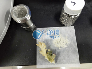 將海底珊瑚剪成小塊放入50毫升鋼罐中,加入專用研磨珠擰緊鋼罐后放入研磨機(jī)里,調(diào)整好參數(shù)待結(jié)束后即可得到實(shí)驗(yàn)結(jié)果。