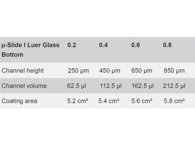 Because of the adhesive layer, the channel height of the μ-Slide I Luer Glass Bottom increases by 50 μm compared to the μ-Slide I Luer.