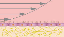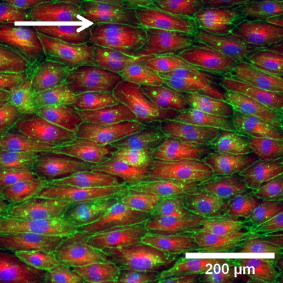Polarized cells on a gel matrix, cultured under defined shear stress.