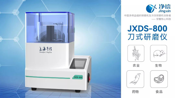 采用上海凈信刀式研磨儀JXDS-800 對樣品進行預處理, 可以進一步提高樣品的均一化程度, 更好地保留分析目標化合物, 為食品樣品中待測組分的提取、凈化、濃縮, 進行定量、定性分析檢測做好充分準備, 保證結果的準確性和重現(xiàn)性。