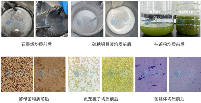 材料科學(xué):制備石墨烯,碳納米管、導(dǎo)電漿料、電阻漿料的生產(chǎn)和制備。通過(guò)均質(zhì)化處理改善材料的導(dǎo)電性能和光滑性。